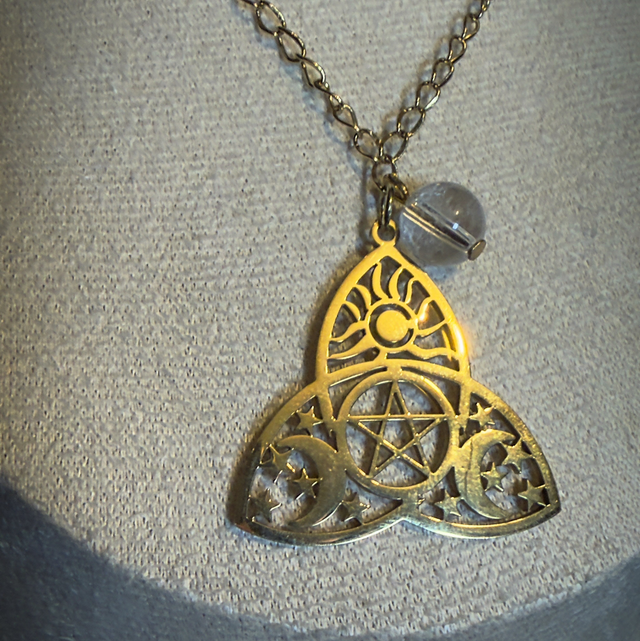 Collier classique triquetra pierre de cristal de roche Et acier inoxydable doré